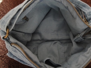 und von innen: ein großes Fach, ein Fach mit Reißverschluss und ein ganz kleines Fach.
