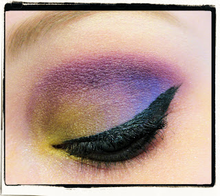 Die Farben waren wahnsinnig schwer zu verblenden, auch war das Gelb nicht so stark pigmentiert, wodurch es durchsichtig erscheint und schlecht verblendet aussieht. Habe es teilweise auftupfen müssen. Den Lidstrich habe ich hier recht stark gemacht, hat etwas von 80er Jahre.