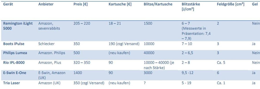 Ich denke dass keines der Geräte für den Heimgebrauch genug Joule bietet um die Haare langfristig wirklich dauerhaft entfernen zu können.