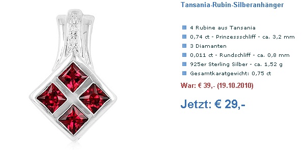 Ich hab gestern ein paar Schnäppchen aus dem OShop ergattert: einen weißen Kunzit-Anhänger für 39 € einen Smaragdring für 29 € und den Aquamarin-Anhänger für 39 € (ich glaub nur der Aquamarin ist noch zu sehen). Der Smaragdring hat sogar einen Startpreis von 345 €, bin gespannt wie er ausschaut. Heute kommen der Kyanit und die Tansanit-Rubine an - bin ja so gespannt wie es diesmal ausschaut