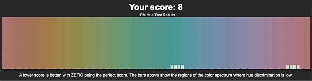 PS um 18:54: Habe mich auf 26 Punkte verbessert! Und meine Schwierigkeiten sind offenbar bei Blau .. Stimmt: Ich war damals der Meinung, ich hätte meinen Mann in einem taubenblauen Anzug geheiratet, aber alle anderen waren der Meinung, der sei grau