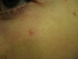 Hier siehts nochmal so aus wie an der Stirn, ist aber mehr die Schläfe, seitlich der Augenbraue.