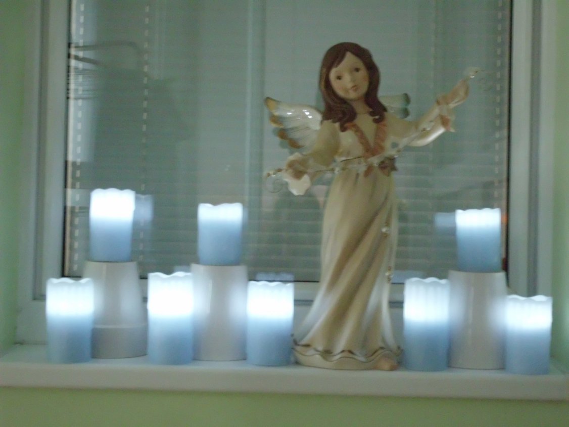 Ich hab insgesamt 11 flammenlose Kerzen. 5 davon mit dieser "echten" Flamme. Die restlichen sind die Stumpenkerzen, die mal Joker der Woche beim waren. Davon sind schon einige kaputt. Und die beiden großen Rosenkerzen von glaub ich 3 Jahren. Die sind echt schön. Mehr brauch ich echt nicht mehr. Mich reizen die flammenlosen Kerzen auch gar nicht mehr, im Gegensatz zum letzten und vorletzten Jahr. Mir reichen meine und mehr kommt nicht mehr ins Haus.
