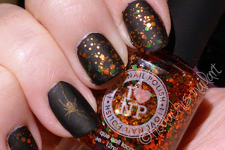 Essie - Licorice , I love Nailpolish - Pumpkinhead, Catrice Rusty but sexy für das Spinnenstamping von der VividLaquer Schablone