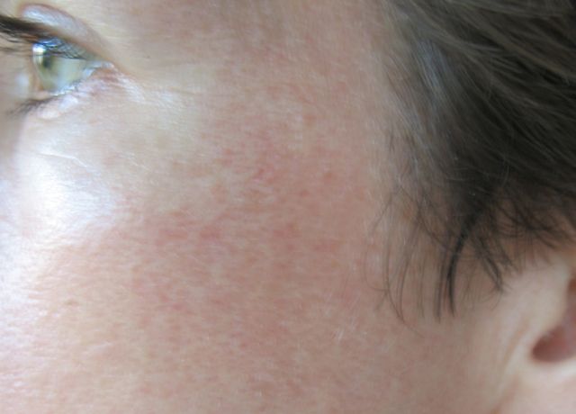 Alle Jahre wieder habe ich einen Anflug von seltsamen Kleinstflecken auf der Gesichtshaut, die aussehen wie eine Mischung aus geplatzten Äderchen, Sommersprossen und staubiger Dreck. Sie tauchen meistens rund um die Augen auf und sehen dann aus, als hätte ich die Augen dunkel mit Lidschatten umpustet, oder auch - wie aktuell - auf meiner Wangenpartie (insbesondere am äusseren Wangenknochenbereich).