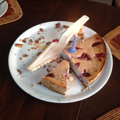 ..und gestern gab es noch diesen (veganen) Schokokuchen, bei mir aber einfach aus Ermangelung an Milch und Eiern. Ich bin sehr begeistert. Hab den in die quadratische 1,7l Ikeaform gepackt, der Teig war extrem flüssig, hab auch nur mit dem Löffel kurz verrührt. Bei meinem lahmarschigen Herd hat er 70min gebraucht, und ist aber schön hoch, als Blechkuchen braucht er sicher weniger Zeit. Er ist total fluffig aufgegangen. Der Geschmack ist okay, allerdings hab ich den Fehler gemacht kaltgepresstes Sesamöl zu verwenden, weil alles Neutrale leer war. Und das schmeckt man ziemlich durch, ich find es nicht schlecht, aber man erwartet den Geschmack nicht, wenn man in einen saftigen Schokokuchen beißt