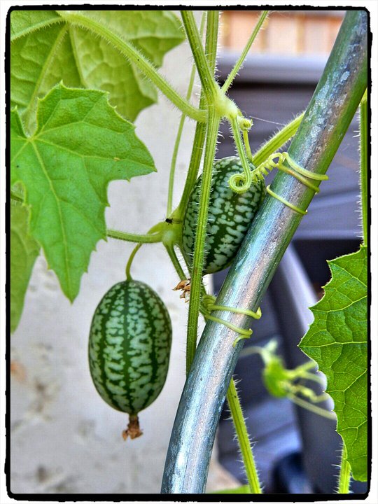 Ich bin total in unsere mexikanischen Dattelgurken verliebt, die gedeihen auf der Terrasse wie Unkraut, sind schon so groß wie ich