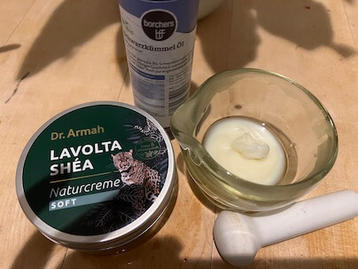 sofort umgesetzt und WOW! Es riecht einfach so guuut. Werde ich für meine verwöhnten Lippen und meine Arme nutzen! Jessas! Wäre ich nicht auf die Idee gefallen. So samtig weich, so liebreich weich und wohlriechend.