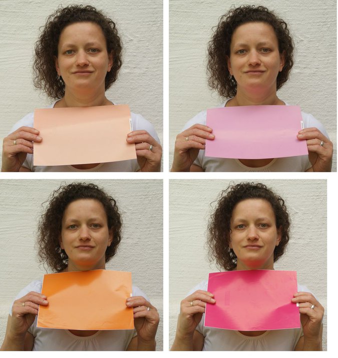 Hallo Süßmatz, leider dauert es bei mir immer etwas länger bis ich Zeit und passende Gelegenheit habe Fotos zu machen. Ich habe es jetzt noch einmal versucht und hoffe, diese passen besser. Ich habe zwei Fotos im weißen T-Shirt. Ich habe noch ein freundin Buch "Farbberatung" hier, in dem sind verschiedene Farbkarten zum testen. Die haben zwar wohl passende Vergleichsfarben, aber auf den Fotos spiegeln die sehr. Ich weiß nicht, ob die was taugen.