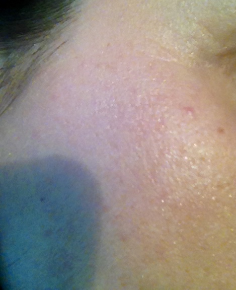 Hey, was soll ich machen?! Bei mir glitzert es eben. Ich habe mal versucht ein Beweisfoto von meiner Wange zu machen, aber es wird so nah dran unscharf mit dem Handy. Vielleicht erkennt man trotzdem den Glitzer. Im Prinzip aber egal. Bei euch funktioniert das Produkt, bei mir nicht. Muss ich mir eben etwas anderes suchen.