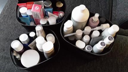 Huhu, Nutellabrot. Ich hab auch vieleviel Sachen, nicht ganz so viel wie du, aber bin auch total vollgestopft in diversen Schränken (auch kleines Bad). Ich wollte dir einen Tipp geben, habe ein paar Hauschka Produkte gesehen bei dir. Ich würde die direkt als nächttes nehmen, mir ist mal was von Hauschka gekippt. Wäre ja super schade!