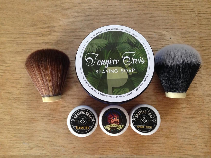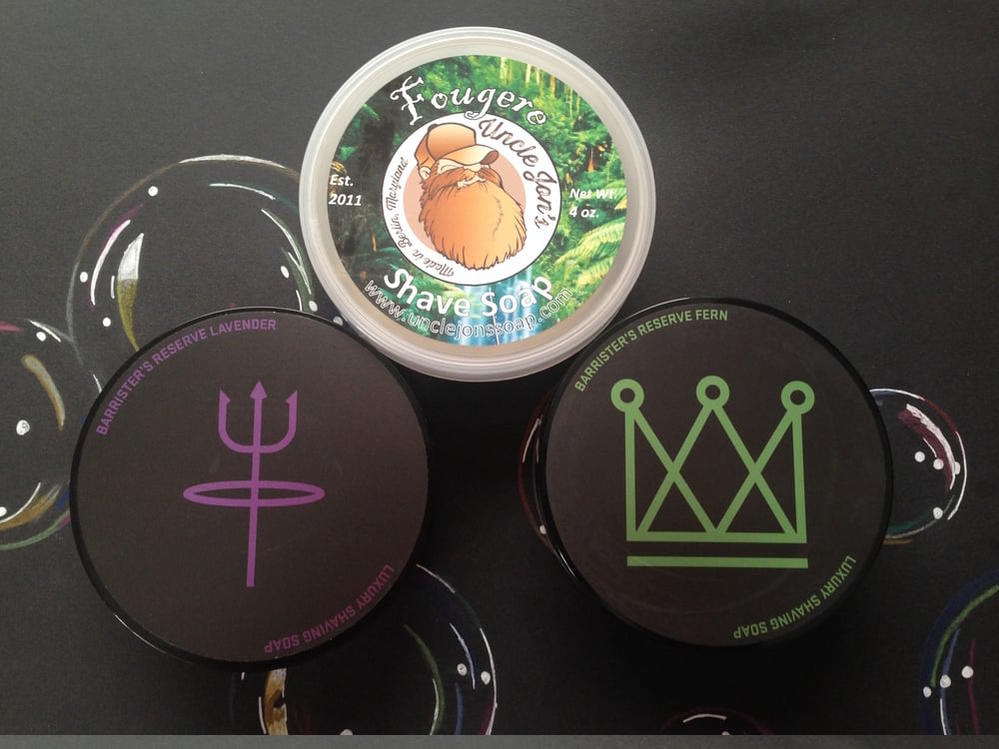 Oben haben wir Uncle Jon's Fougere, toller Duft und der Schaum aus Coconut Oil und Tallow ist einfach sensationell.