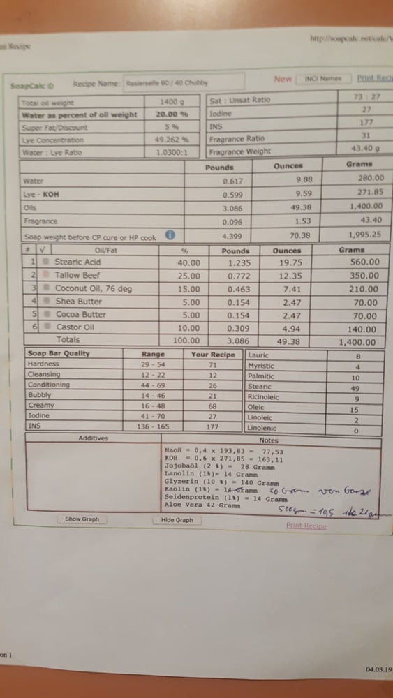 Keene Stearinsäure drin? Naja vielleicht stabilisiert das Kaolin den Schaum.