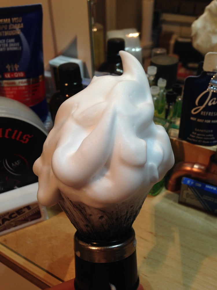 Wenn Du in einem Schüsselchen aufschäumst, wirst Du ein anderes Ergebnis bekommen. Der Schaum ist mit "normaler" Seife nicht vergleichbar, er ist dichter und viel stabiler.