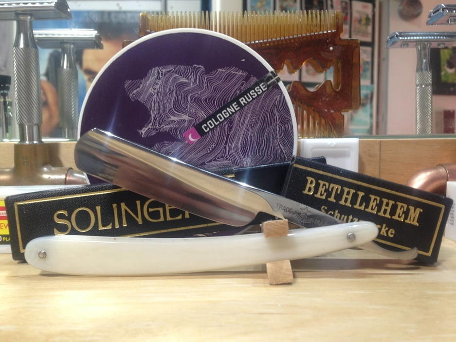 Der Duft war extra ausgesucht, von Fine "Lavender pour Homme", passend für einen älteren Herrn, weil sehr klassisch. Er war der einzige, der nass rasiert. Bäh