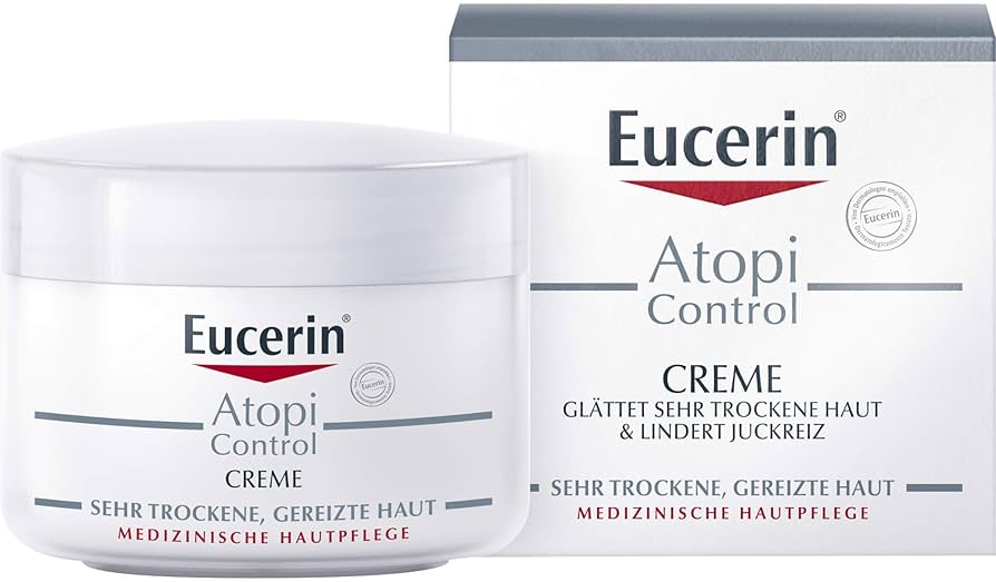 Ich hatte vor einigen Jahren schlimm Neurodermitis im Gesicht und am Hals. Seitdem benutze ich meinen heiligen Gral die Eucerin AtopiControl Creme. 75ml in einem schraubbaren Plastiktiegel. Die ist so schön reichhaltig und von der Konsistenz eher dick und fest. Seitdem ich die benutze hab ich kaum noch Ausbrüche. In ihr ist auch Licochalcon A enthalten.