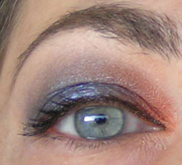 Chinda-Chan: ich find das orange/kupfer-ige ziemlich auffällig, aber insgesamt ist es ein schönes AMU, und du kannst das gut tragen. Ich würds noch schöner finden, wenn die kupferige Farbe am Oberlid weiter nach außen gehen würde, mindestens bis zu Mitte.