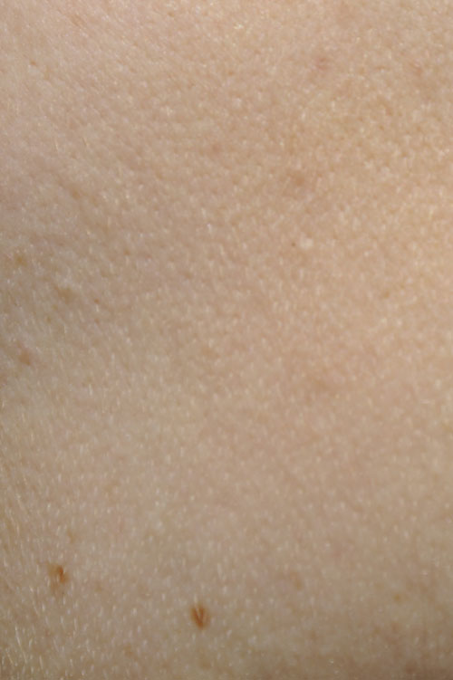 Das Bild ist bei Sonnenlicht im Garten aufgenommen und zeigt meine linke Wange ;).