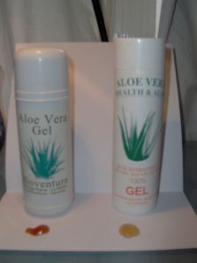 im Badezimmerschrank meuner Mutter 2 Aloe Vera Gels 100 % gefunden (beide nicht aus Deutschland), die sie schon vergessen hatte.
