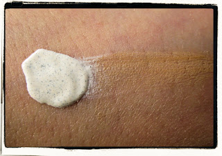 Das Zeug ist total lustig... als ich es auf dem Handrücken ausprobieren wollte, habe ich mich wegen der weißen Creme mit den kleinen Pünktchen drin total erschrocken und dachte schon, das Make Up wäre gekippt oder so...Ich wollte es schnell wegwischen, und siehe da: Wie von Zauberhand verwandelt sich das weiße Zeug wirklich in getönte Foundation. Wahrscheinlich sind die Farbpigmente in den kleinen Kügelchen konzentriert, und die zerplatzen bei Druck bzw. beim Verteilen.