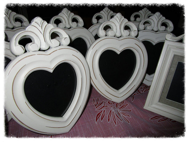 Es ist ja jetzt schon einige Zeit her seit meinem letzten Post (neuer Job, Urlaub, jetzt kurz vor der Hochzeit gezwungener Umzug), aber ich war trotzdem fleissig. Hier ist nur eine schnelle Kleinigkeit, die ich gestern fuer unsere Tischdeko gemacht habe: die Rahmen sind innen mit Kreidetafelfarbe bestrichen und werden als Tischnummernschilder dienen.