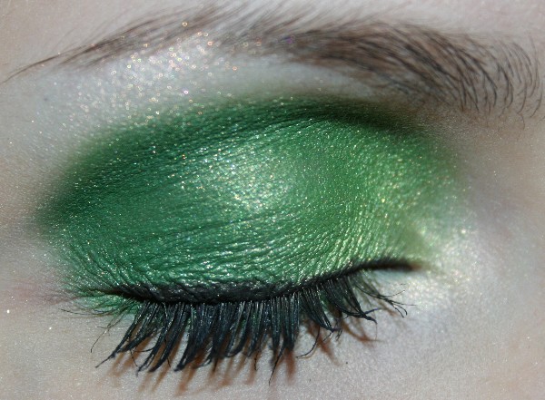 MAC Chromaline weiß und grün, UDPP, Limecrime Eyeshadows Pink Poodle und Elf, MAC Eyeshadows Brulé, Phloof!, Newly Minted, Bottle Green, MUFE Star Powder 943, MAC Minted Khol, MAC Powerkhol Feline, Manhatten Dip Eyeliner Waterproof Schwarz, MAC Glitter Eye Liner Lime Dandy, Diorshow Iconic Mascara Schwarz