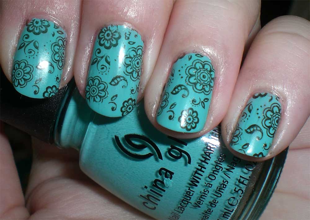 ich mach meistens erst am zweiten oder dritten tag stamping drauf, wenn ich zwar lust auf was neues habe, aber die farbe an sich noch zu schade ist, um gleich was ganz neues rauf zu machen. die meisten farben möchte ich aber erstmal allein genießen