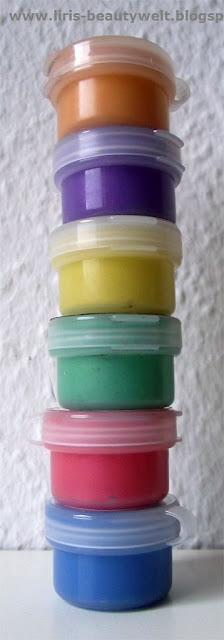 Habe versucht ein paar Swatches zu machen, aber die sind alle nix geworden, die Farben kommen bei mir überhaupt nicht raus auf den Fotos. Aber dafür habe ich ein paar Vergleichsfotos von der Größe der Jars gemacht.