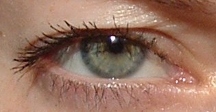 Meine Augen sind ziemlich gewöhnlich braun, je nach Make-up wirken sie heller oder dunkler. Wenn ich Smokey eyes habe, können meine Augen ganz schön knallen, auf manchen Fotos siehts aus als hätte ich dunkelbraune Augen. Mit etwas Fantasie sieht man in bestimten lichtverhältnissen einen hauch Grün. Keine Sprengsel, keinen Ring, einfach nur braun.