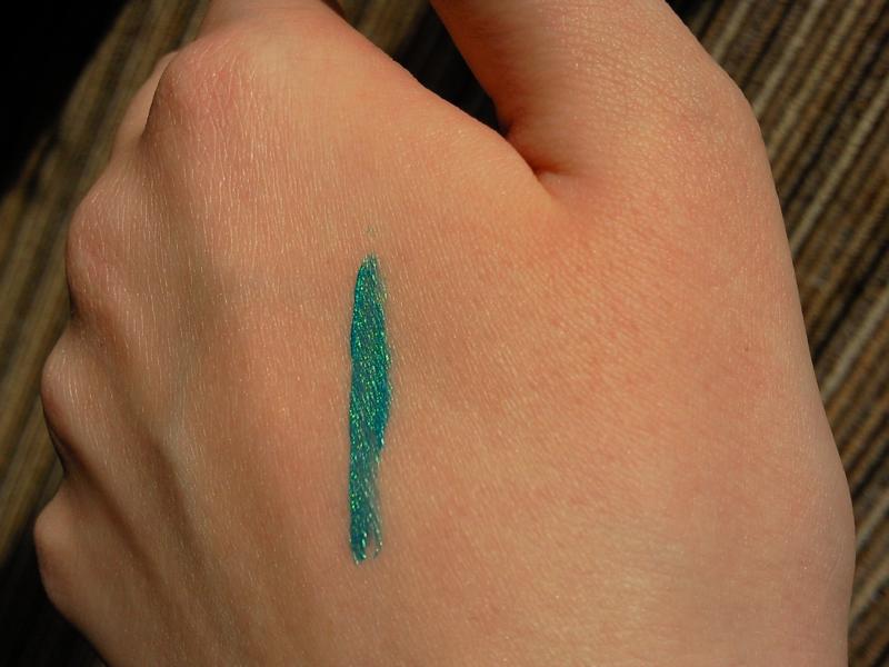 Den Eyeliner hab ich auch, fand den seeeeehr schwierig abzubekommen. der hält wie bombe. allerdings hab ich ihn auch nur kurz mal zu hause getestet, d.h. kein alltagstest... anbei mal ein swatch von der farbe. hoffe man kanns erkennen.