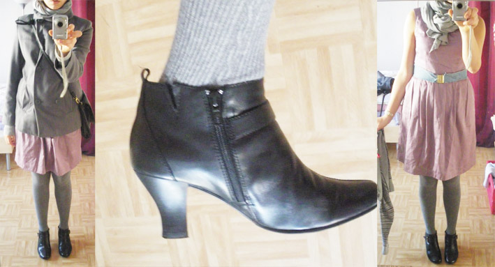Aktuell tendiere ich zu kurzen Strickkleidern in Kombination mit blickdichter Strumpfhose/Leggins und Stiefel. Je nach Auffälligkeit des Strickmuster oder Schnitt, wird dies mit Accessoires aufgepeppt.