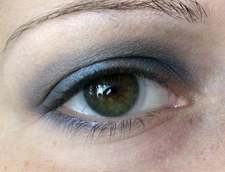 Lässt sich leider nicht so einfangen - im Spiegel ists links und recht gleichmäßig, der Lidstrich auch nicht so fleckig. Naja.