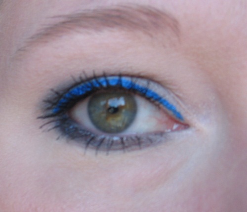 Und schwarzer p2 Kajal zwischen/unter den oberen Wimpern bis zur Hälfte vom Auge.