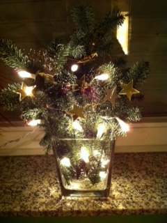 Aber vielleicht wäre eine Alternative eine Zimmerpflanze zu schmücken? Wir haben hier schon Kugeln und Lichterkette in der Yucca Palme. Sieht super aus!