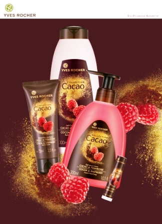 Bei Yves Rocher steht Weihnachten 2013 ganz im Zeichen köstlicher Schokolade. Gleich drei limitierte Körperpflege-Linien ohne Parabene widmen sich dem Duft zarter Schokolade in Kombination mit süßen Früchten: Cacao & Orange, Cacao & Himbeere oder Cacao & Pistazie.
